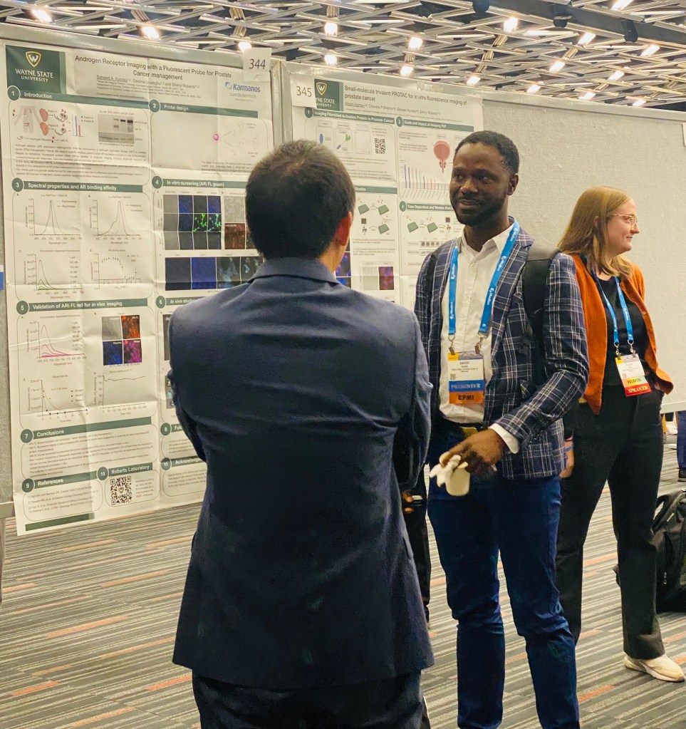 WMIC 2024 13 Sep 202419 Mar 2026 | Sheryl Roberts Dr. Saheed Ayodeji and Ms. Allison Ingman live at the WMIC, in Montreal, Canada, poster presenting our work. Congrats to both for their Karmanos Cancer Institute Travel Award. Roberts Lab @ WMIC 2024 Roberts Lab @ WMIC 2024 Share this: Share on X (Opens in new window) X Share on LinkedIn (Opens in new window) LinkedIn Share on Pinterest (Opens in new window) Pinterest Share on Facebook (Opens in new window) Facebook Share on Tumblr (Opens in new window) Tumblr Like Loading... Related